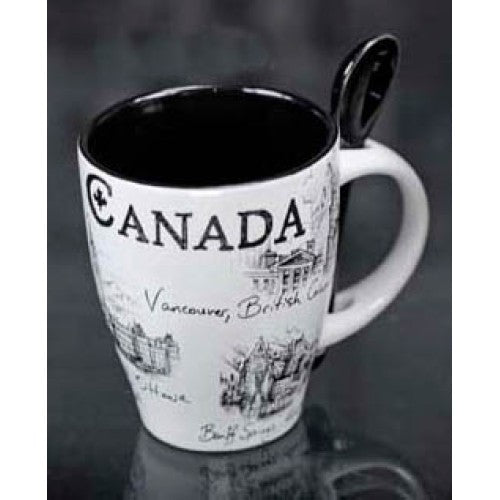 00611 - CANADA SOUVENIR MUG W/SPOON BLACK/WHITE
