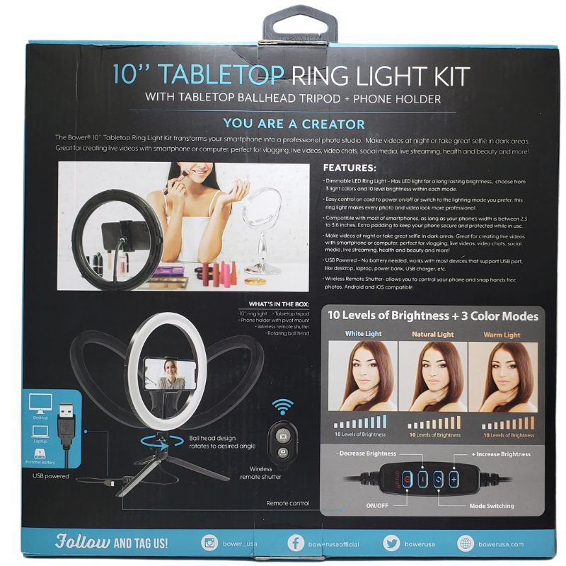 The Bower® 8’’ Tabletop Ring Light Kit transforms your smartphone into a professional photo studio.