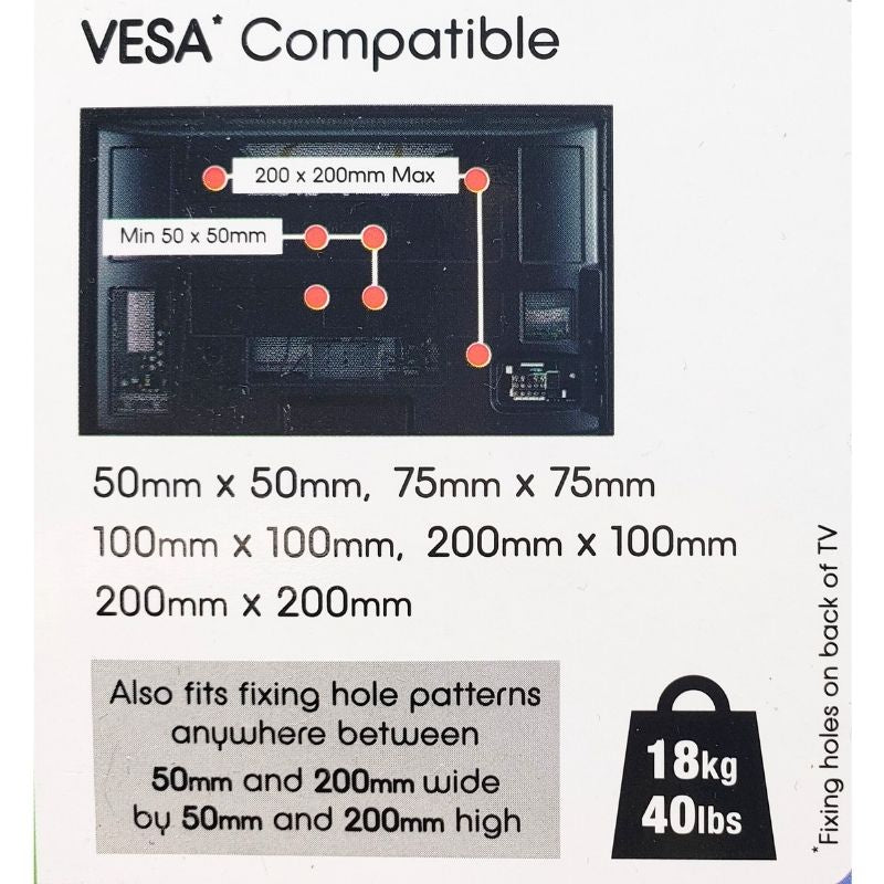 VESA Compatibility 75mm x 75mm 100mm x 100mm 200mm x 100mm 200mm x 200mm