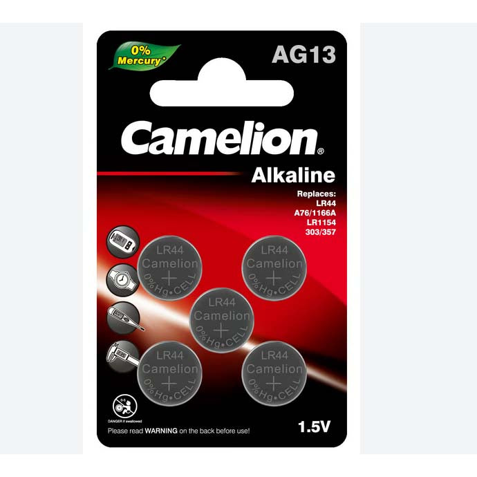 CAMEL-AG13-357 - BATTERY ALKALINE AG13 1.5V RELACES 357 LR44 A76 LR1154 SR44 (5 pcs/pkg)