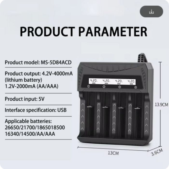 4 Slot Battery Charger Intelligent LCD Screen 18650 4.2V Rechargeable Lithium Battery For 1.2V NIMH AA / AAA Battery Charger