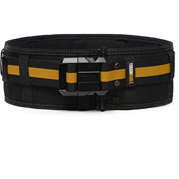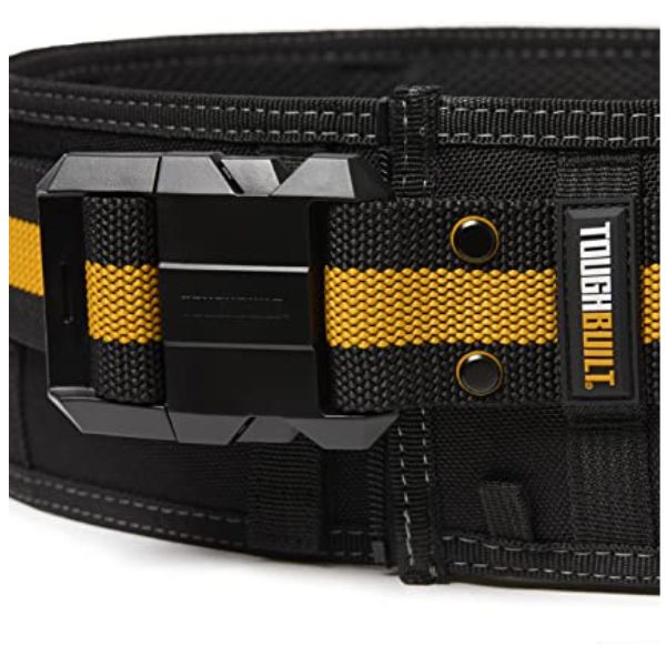 The ToughBuilt padded belt with heavy duty buckle can be completely customized to large and small waists for the ultimate comfort and support. The padding extension fully surrounds larger waists and can be zipped off for smaller waists: no excess bulky folded over padding. Excess belt length can be trimmed and capped with the included steel tip. Optimized to work with all ClipTech pouches it is constructed with a custom heavy gauge steel belt buckle high quality fabrics and comfortable padding.