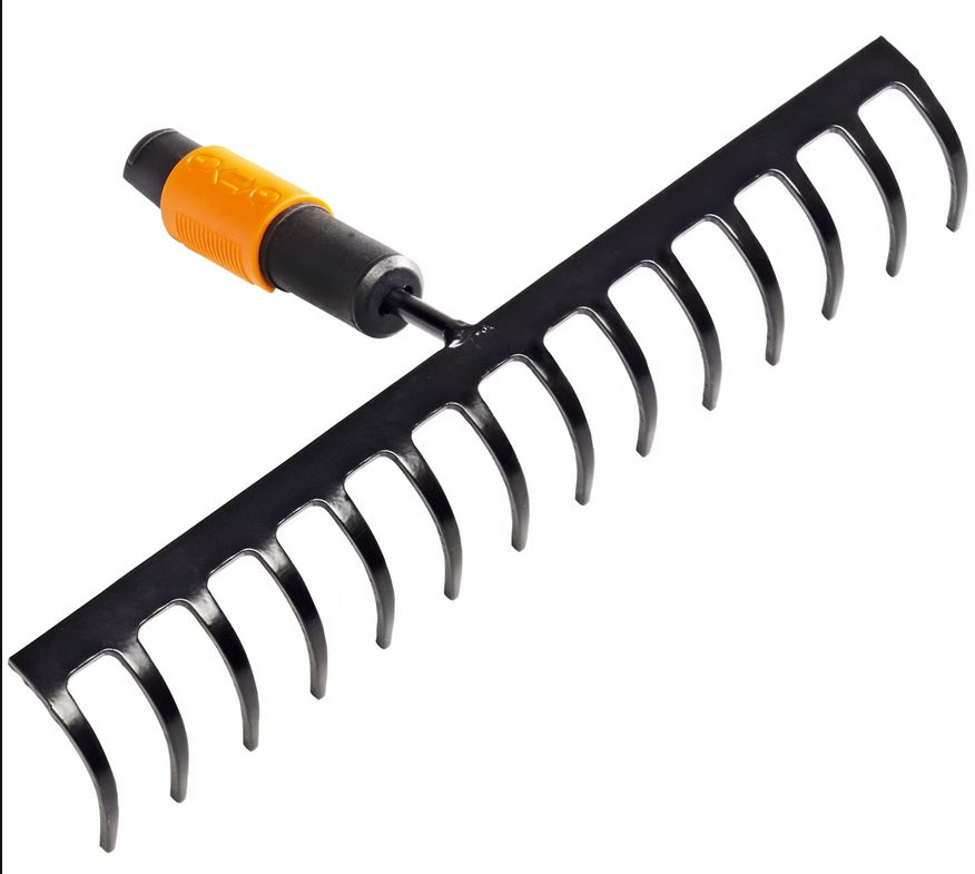 The Fiskars® Garden Rake Head is ideal for loosening and