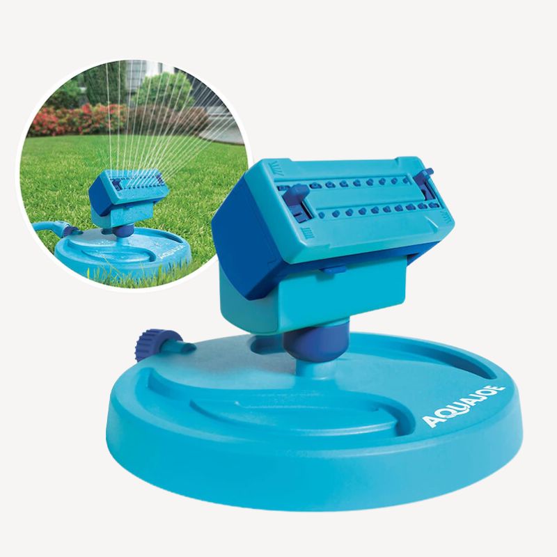 Put the water precisely where you want it with Aqua Joe’s AJOSPR20 fully adjustable mini oscillating sprinkler. Cover more ground and keep your lawn looking lush with the 20 durable clogresistant rubber nozzles that provide even water dispersal. And with the completely customizable water flow and spray range you can water your way for small medium or large lawns of up to 4 250 square feet! Equipped with a maximum spray width of 29.5' to 59' you’ll reach every corner of the yard with ease.